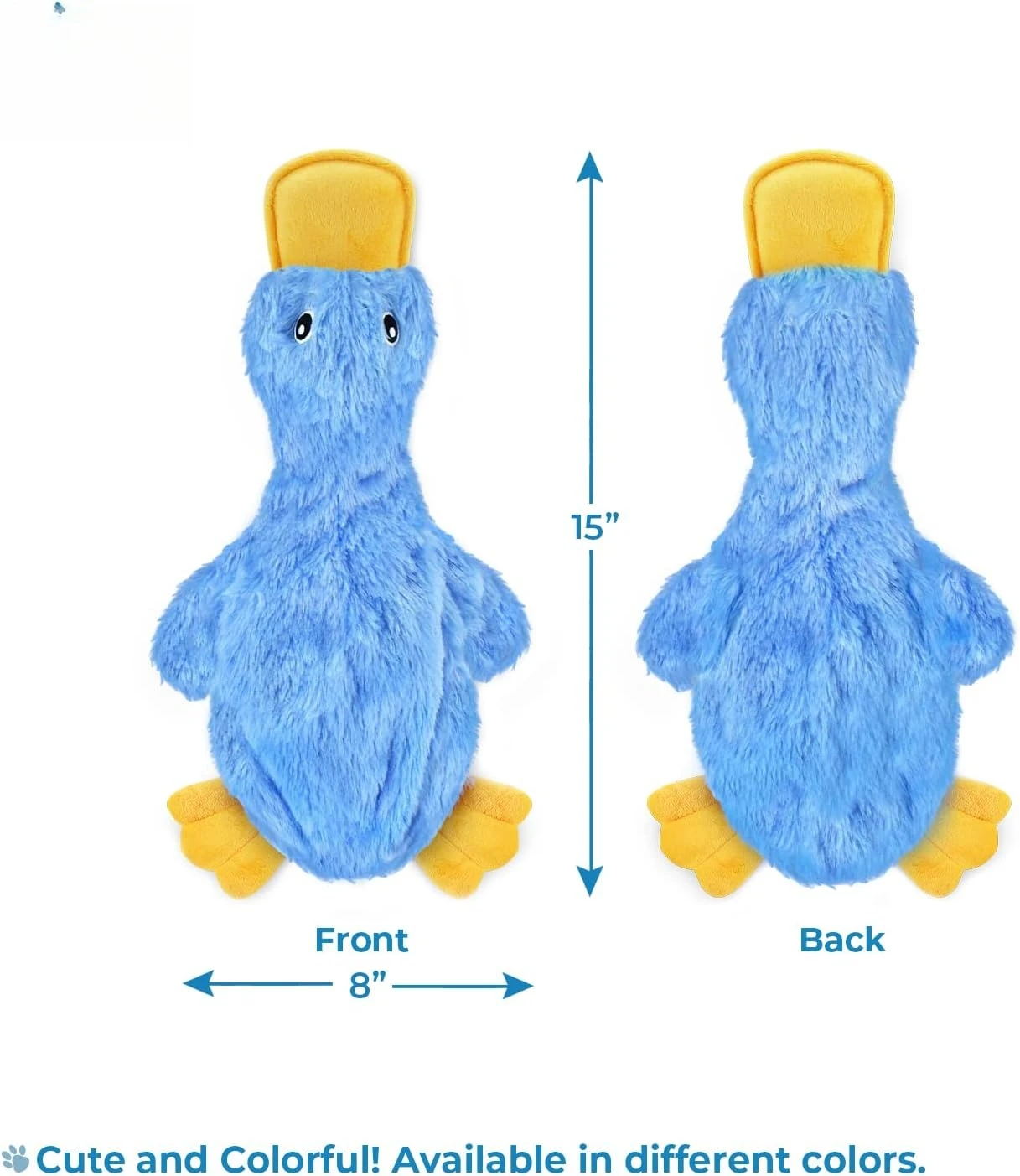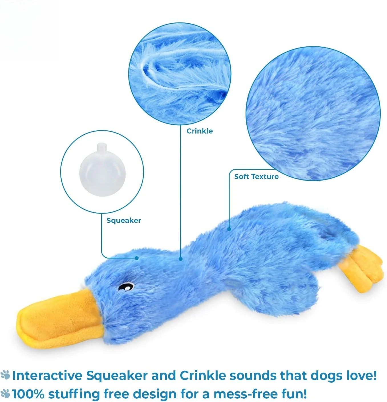 Interactive squeaky dog chew toy, crinkle duck, blue, large, durable for small, medium & large chewers and fetch lovers